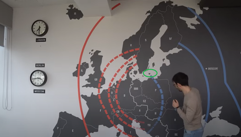 Они прогулялись по офису и она отметила, что если очень внимательно присмотреться, то можно найти на фреске «карта Arma времён Холодной войны» остров, которого нет в реальной жизни — интервьюер его в итоге нашёл, он располагается к северу от Польши и к юго-востоку от Швеции.
