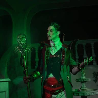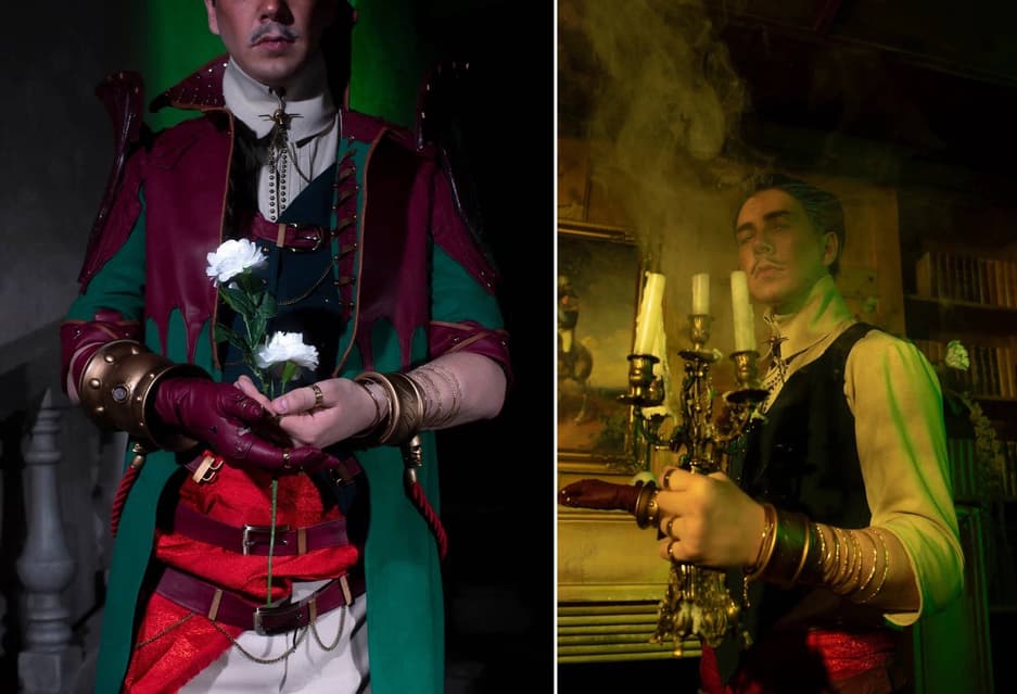 Косплеер Lakomka перевоплотился в Эммрика Волькарина из RPG Dragon Age: The Veilguard, чтобы вступить в неварранский орден магов, специализирующийся на мумификации трупов и изучении всего, что связано со смертью, а также стать мастером-некромантом.