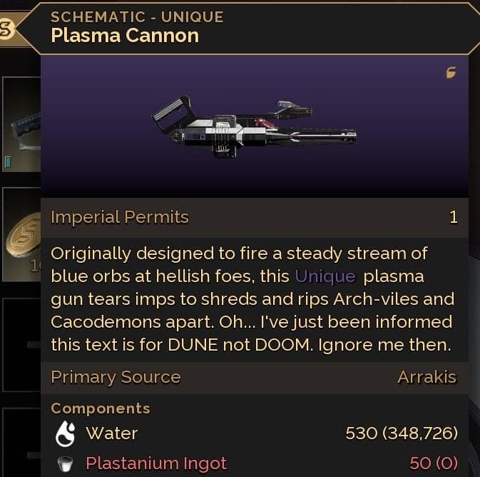 Упоминаются монстры Arch-vile и Cacodemon — классика серии Doom, никак не связанная с миром Дюны. Похоже, это лёгкий троллинг со стороны разработчиков.