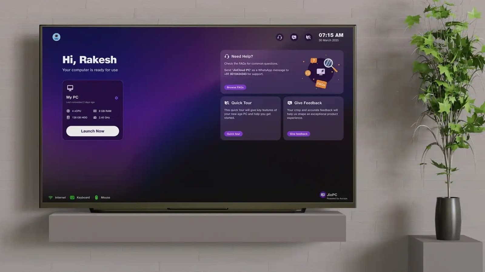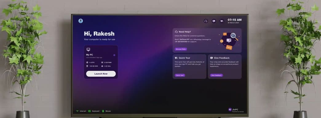 Суть проста: JioPC — удалённый рабочий стол, доступный через приложение в приставке Jio. Подключаешь мышь и клавиатуру — и получаешь полноценную систему прямо на экране телевизора.