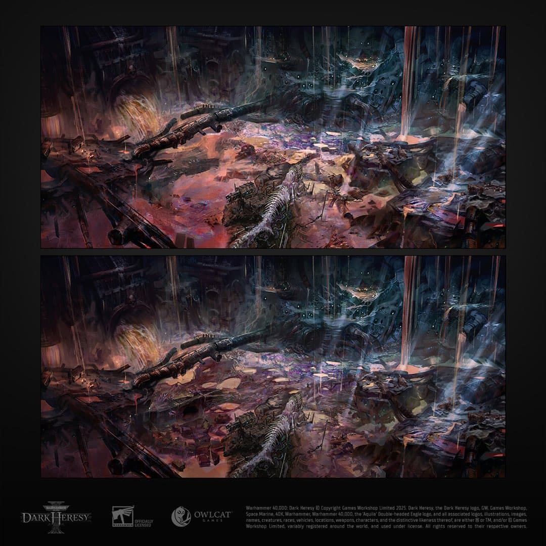 Owlcat Games постепенно рассказывает о новой cRPG Warhammer 40,000 Dark Heresy. Недавно разработчики представили двойной концепт-арт и немного рассказали об игровом мире: