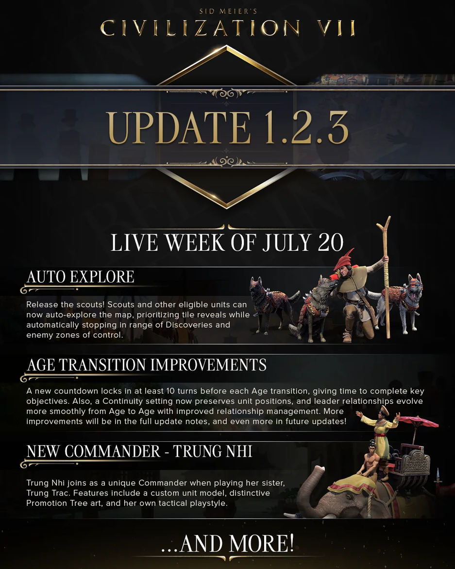 Релиз обновления 1.2.3 для Sid Meier's Civilization 7 ожидается на следующей неделе.