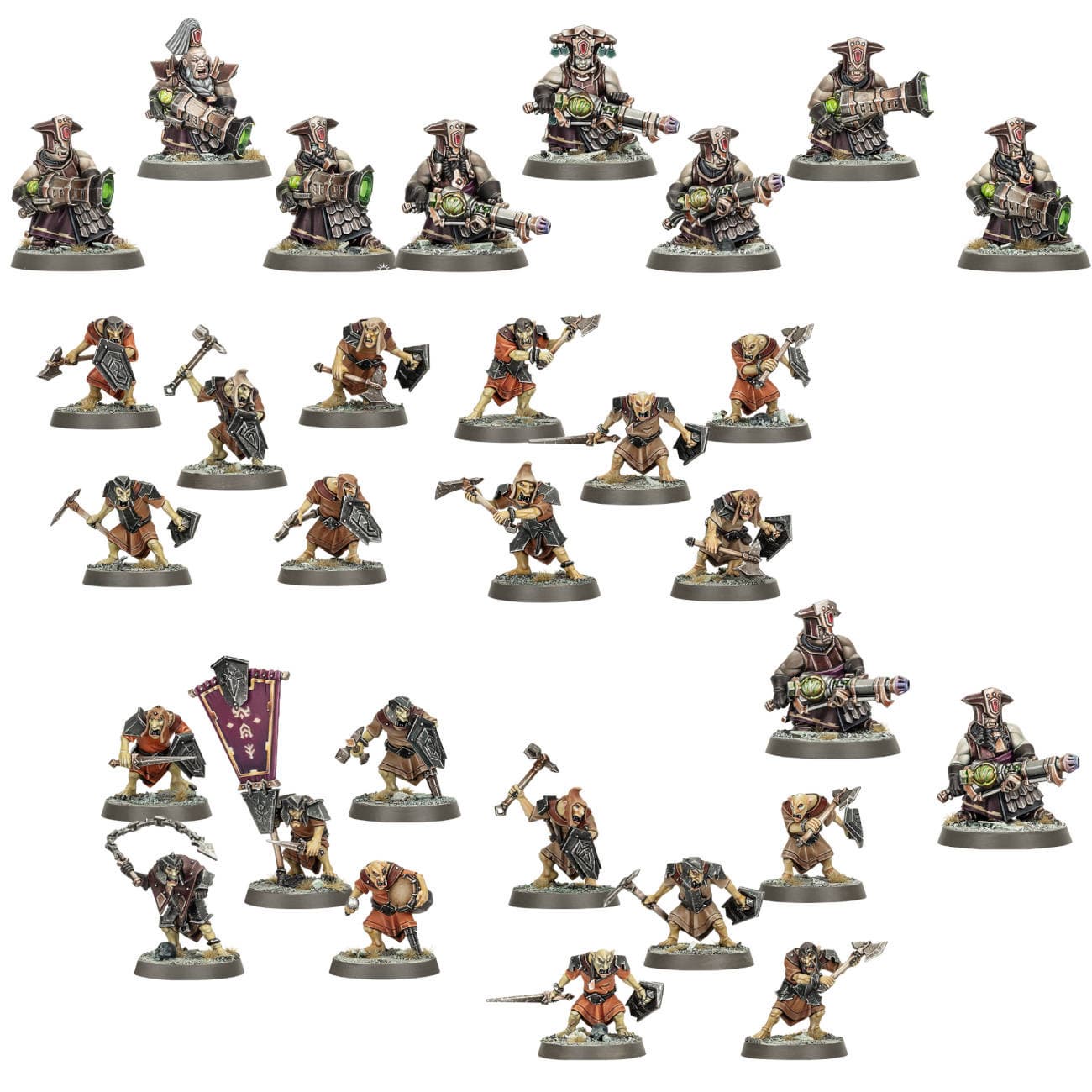 Внутри боевой коробки с миниатюрами «Helsmiths of Hashut» можно отыскать Военного Деспота (War Despot) – лидера зиккуратных крепостей Зардронов, Адские Когорты, Хобгрота, несущего огромный гонг, Торментор-Бомбарду (Tormentor Bombard) – мортироподобное оружие, которое забрасывает снаряды высоко в воздух, чтобы они падали на врагов Хелсмитов.