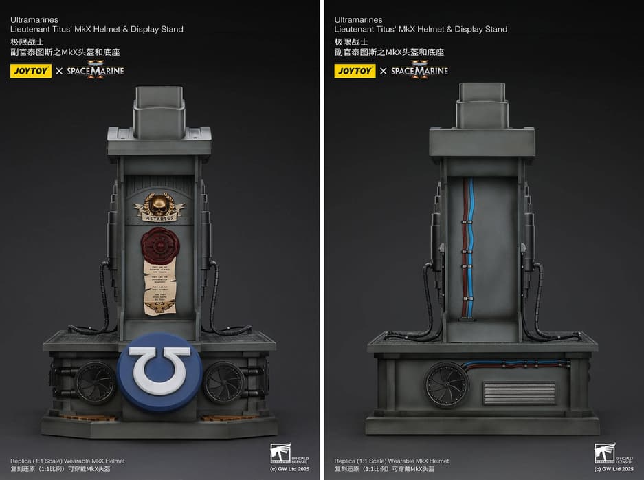 Также присутствует отсек для батареек AAA, чтобы подсвечивать линзы изнутри. На тематический подставке присутствует знак главы Ультрамаринов, скульптурная Печать Чистоты и множество других деталей.