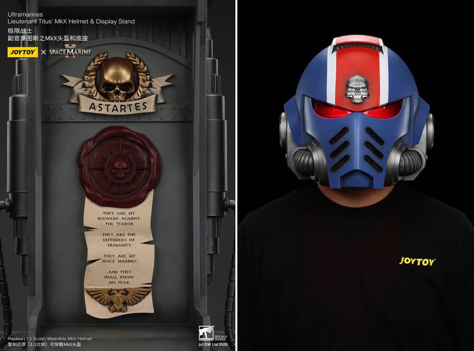 В 2025 году фанаты шутера Warhammer 40,000: Space Marine 2 смогут удивить прохожих на улице необычным “головным убором”, так как компания JoyToy выпустит официально лицензированный шлем лейтенанта Тита, у которого будут линзы с подсветкой.