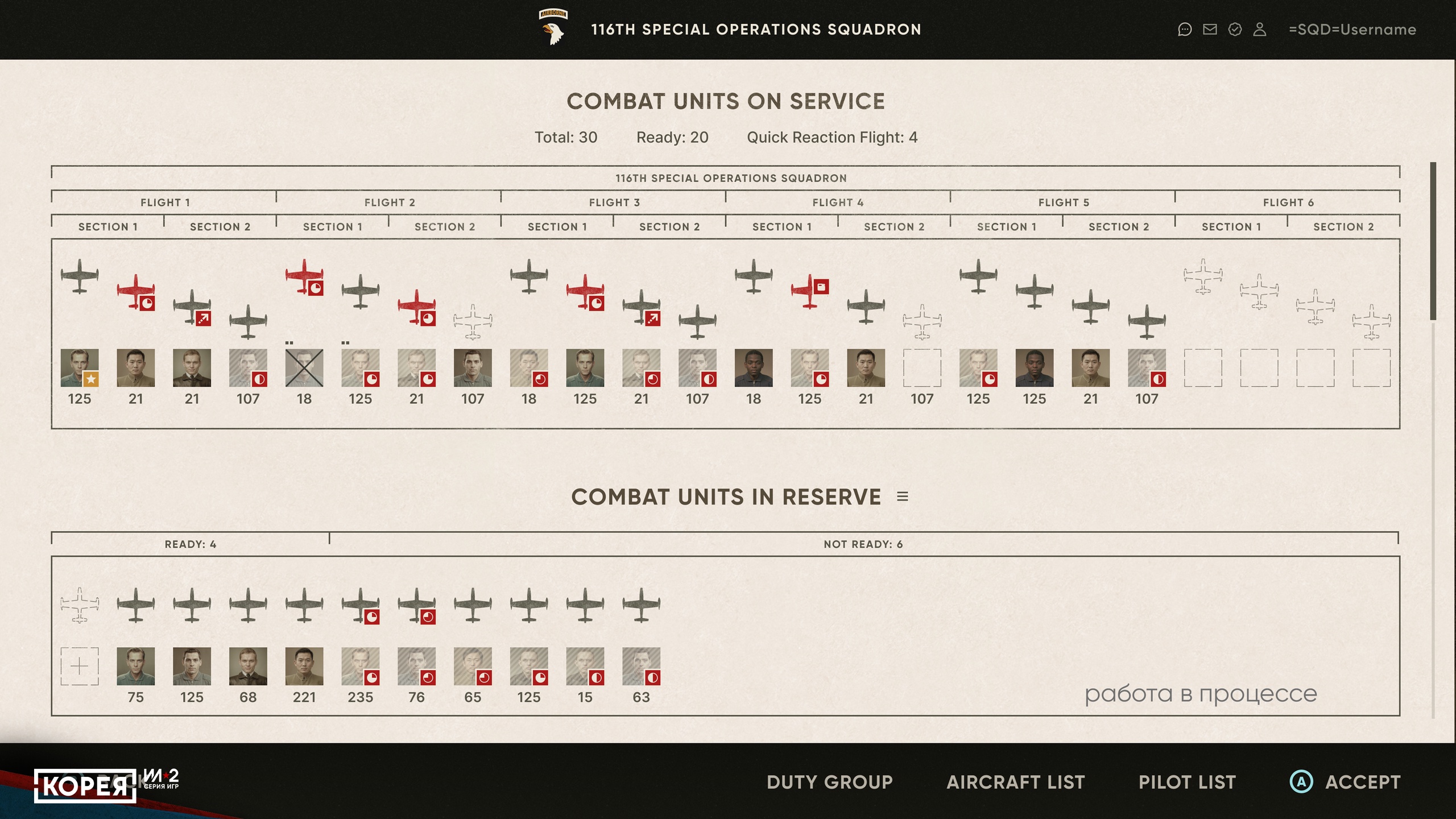 Помимо этого, игроку предстоит управлять материальной частью — назначать конкретные самолёты на боевой вылет, определять приоритет ремонта, запрашивать у руководства возмещение потерь матчасти.