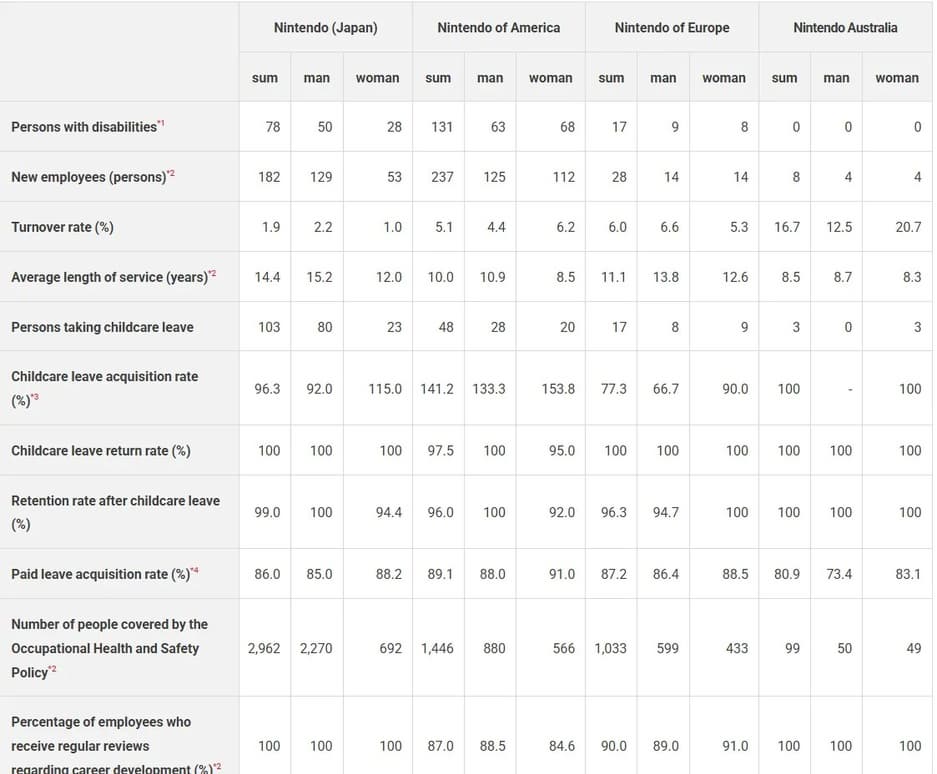 Также Nintendo раскрыла данные о продолжительности работы: в Японии сотрудники остаются в компании в среднем 14 лет, в США — около 10. Такой срок для игровой индустрии — редкость, особенно сейчас, когда даже крупные студии не гарантируют стабильности.