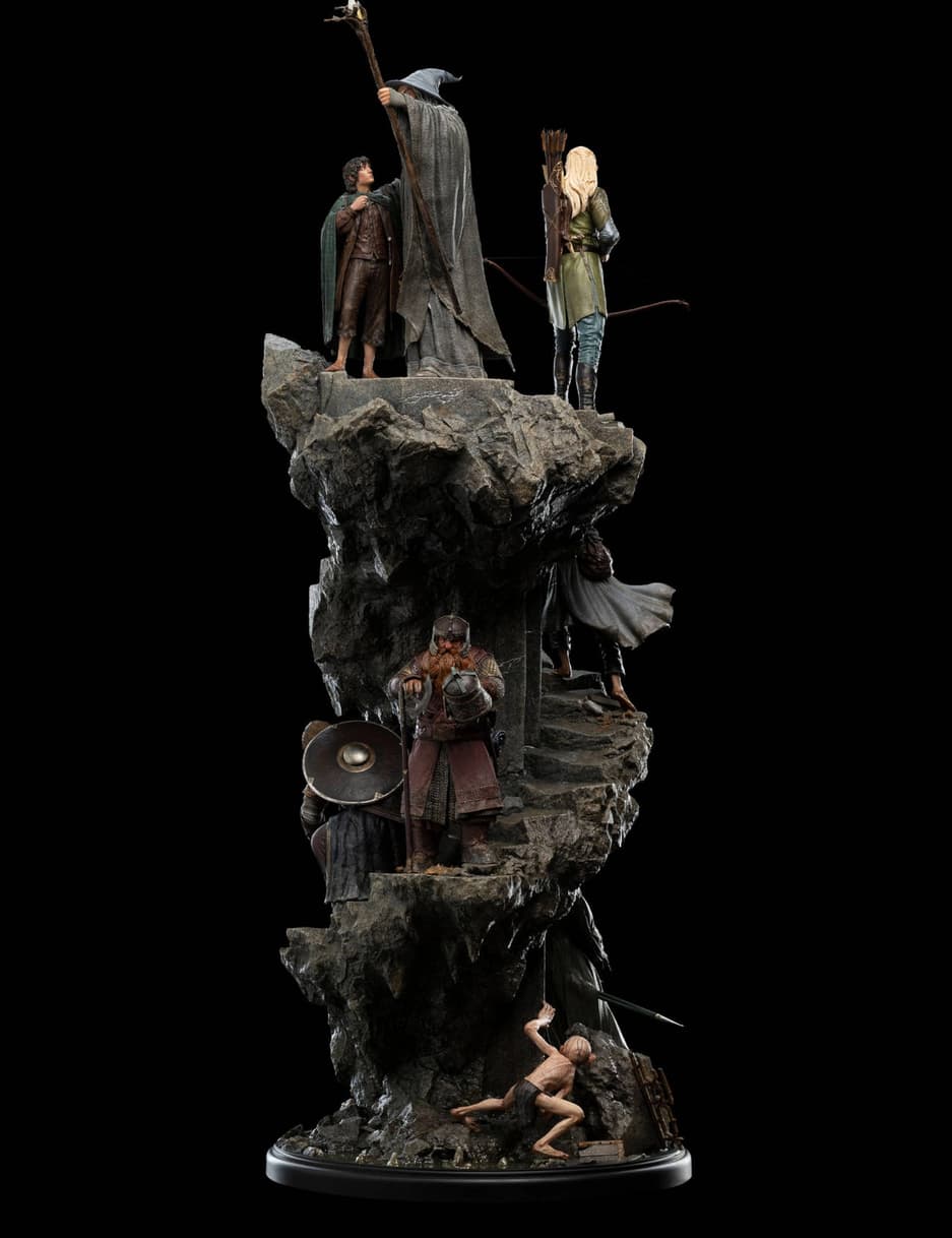 Этот коллекционный предмет, изображающий 12 персонажей в динамичном окружении, запечатлел момент, когда Братство поднимается по разрушенной лестнице глубоко в залах Мории.