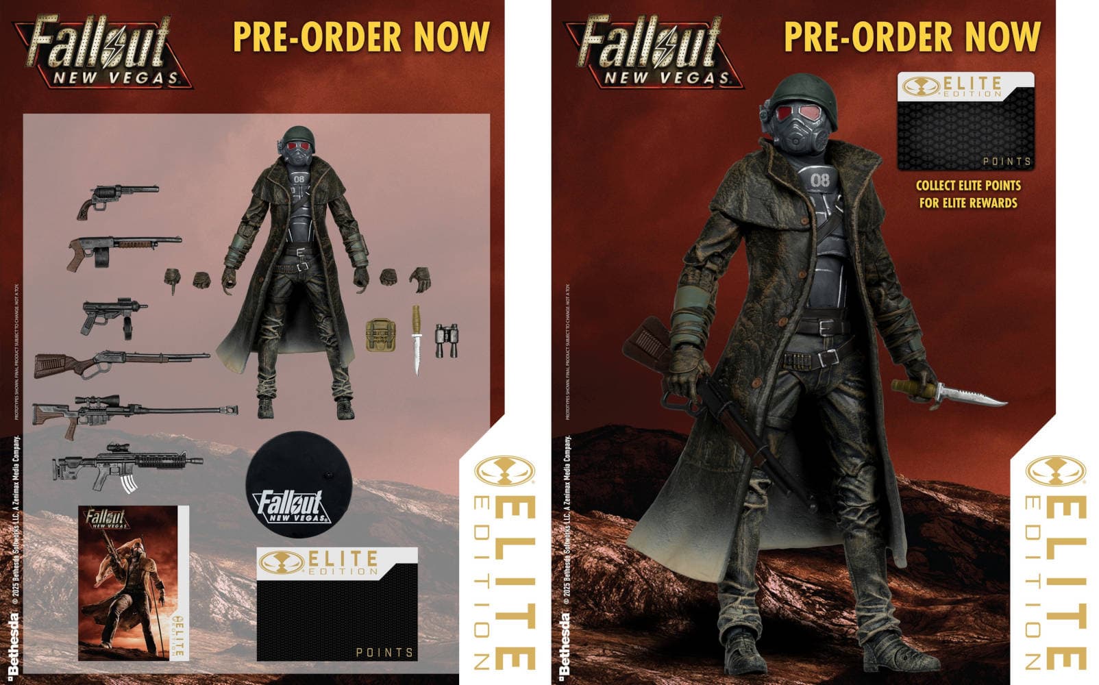 Пак с НКР, предназначенный для фанатов Fallout: New Vegas, содержит тело с 22 подвижными соединениями, четыре сменные кисти рук, бинокль, фугасные заряды, боевой нож, пистолет-пулемет, рейнджерский пистолет, дробовик, ружье, карабин стрелка, снайперскую винтовку, подставку, карту ELITE POINTS и коллекционную арт-карточку.