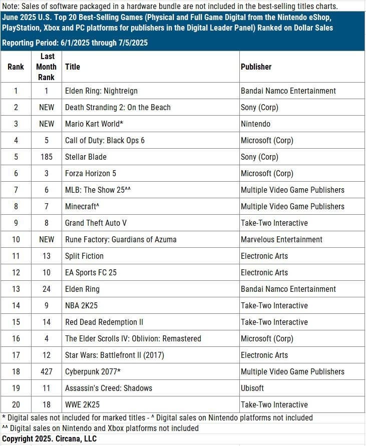 Интересно, что Mario Kart World не стала лидером продаж среди игр, хотя могла бы. Nintendo не раскрывает цифры из eShop, и аналитик Мэт Пискателла не учитывал цифровые данные. Вполне возможно, игра доминирует в онлайне — просто статистика это пока не отражает.