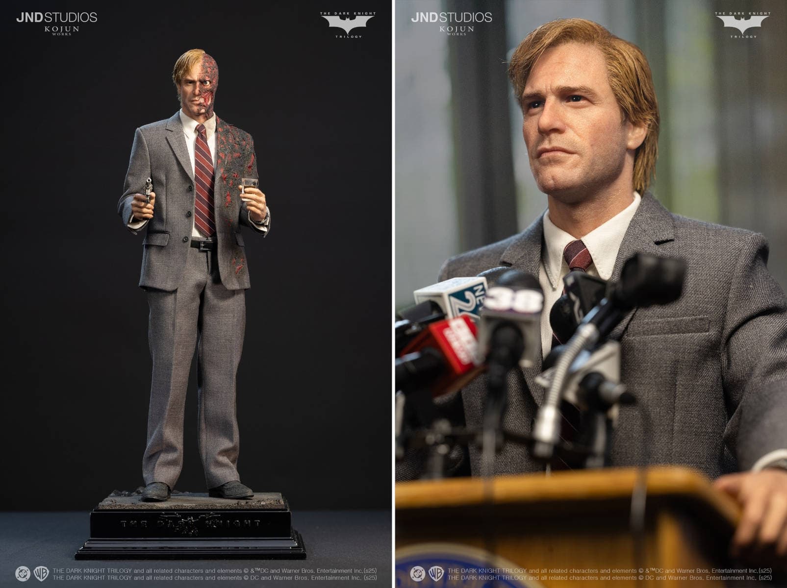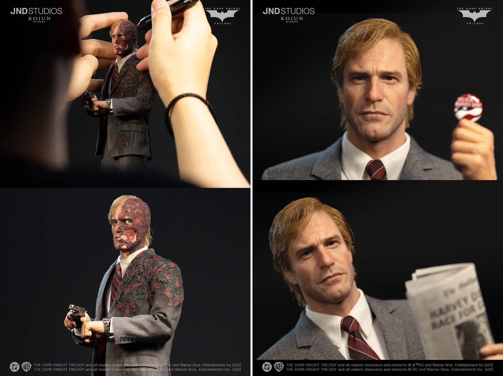 Компании JND Studios и Kojun Works объявили о том, что открылся предзаказ на статую Харви Дента из фильма «Тёмный рыцарь». На выбор предоставляется три варианта.