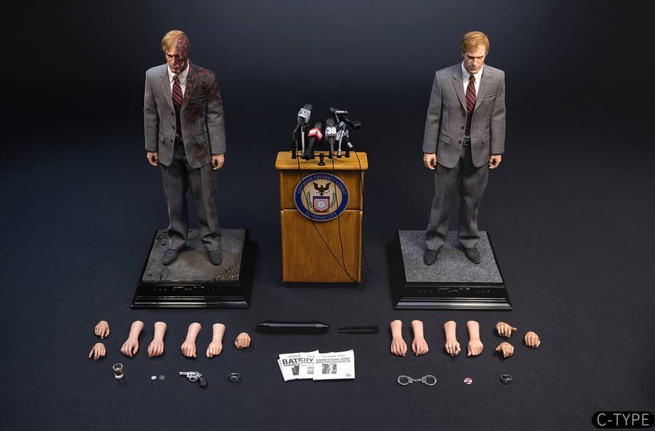 В самом дорогостоящем наборе получится обнаружить две головы с внешностью актера Аарона Эдварда Экхарта, подставки, ручку и пинцет для регулировки магнитных глаз, два тела с суставами и следующими характеристиками: высота – 36,5 см, ширина – 15,5 см, глубина – 15,5 см.