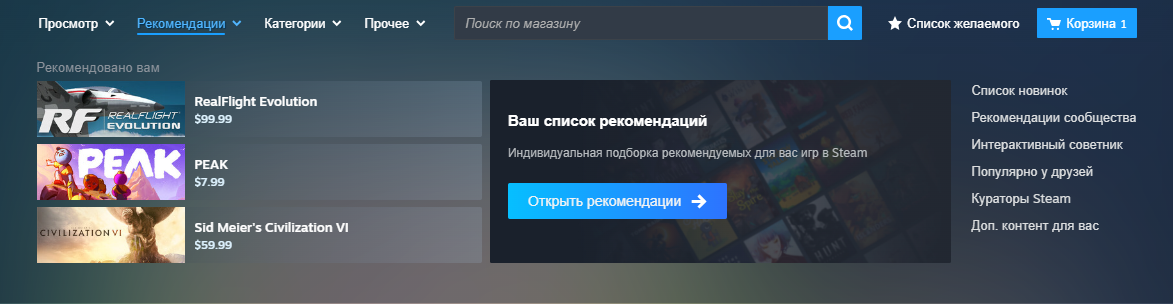 - Недавно просмотренные: простой способ вернуться к играм, страницы которых вы уже просматривали.