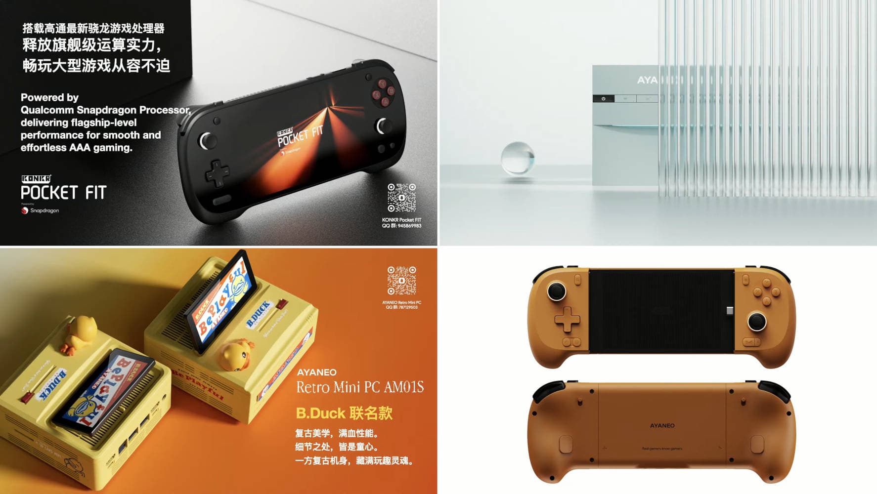 Команда завезет киберспортивный планшет Ayaneo Gaming Pad и телескопический геймпад для смартфонов. Люди получат два мини-ПК: AM01S – с ретро-дизайном и откидным вторичным экраном, AM03 – с эстетичным дизайном.
