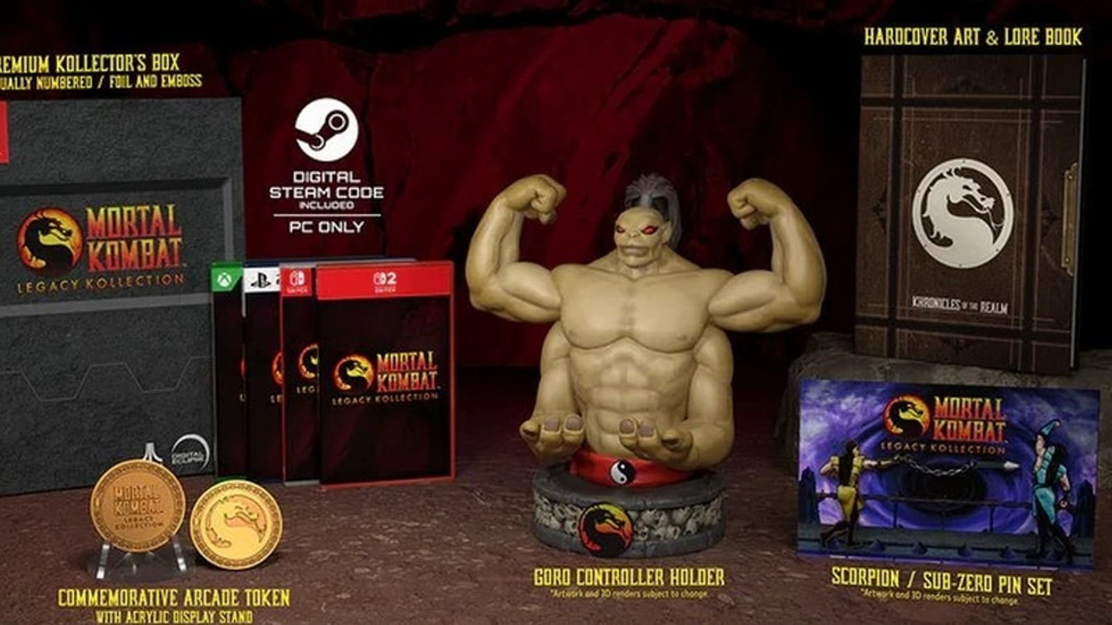 - Kollector’s Edition ($150) — премиальное издание, включающее эксклюзивные предметы, такие как подставка для контроллера в виде Горо и памятный аркадный жетон. Доступно для PS5, Xbox Series X, Nintendo Switch, Switch 2 и ПК, но предзаказы ограничены по времени и принимаются только до 31 августа через интернет-магазин Atari и Limited Run Games