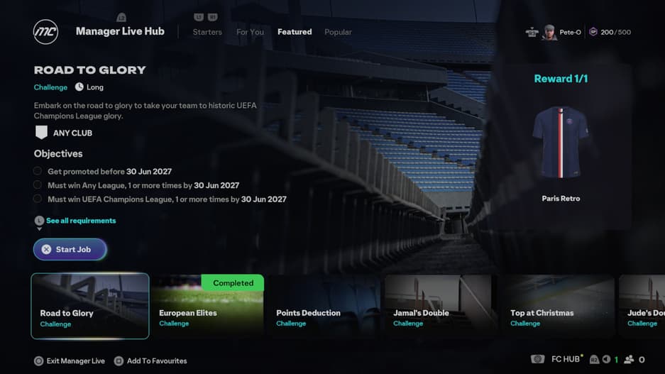 Manager Live Hub с вкладками позволит отслеживать разные элементы карьеры и цели. Можно будет выбрать клуб или создать собственный.
