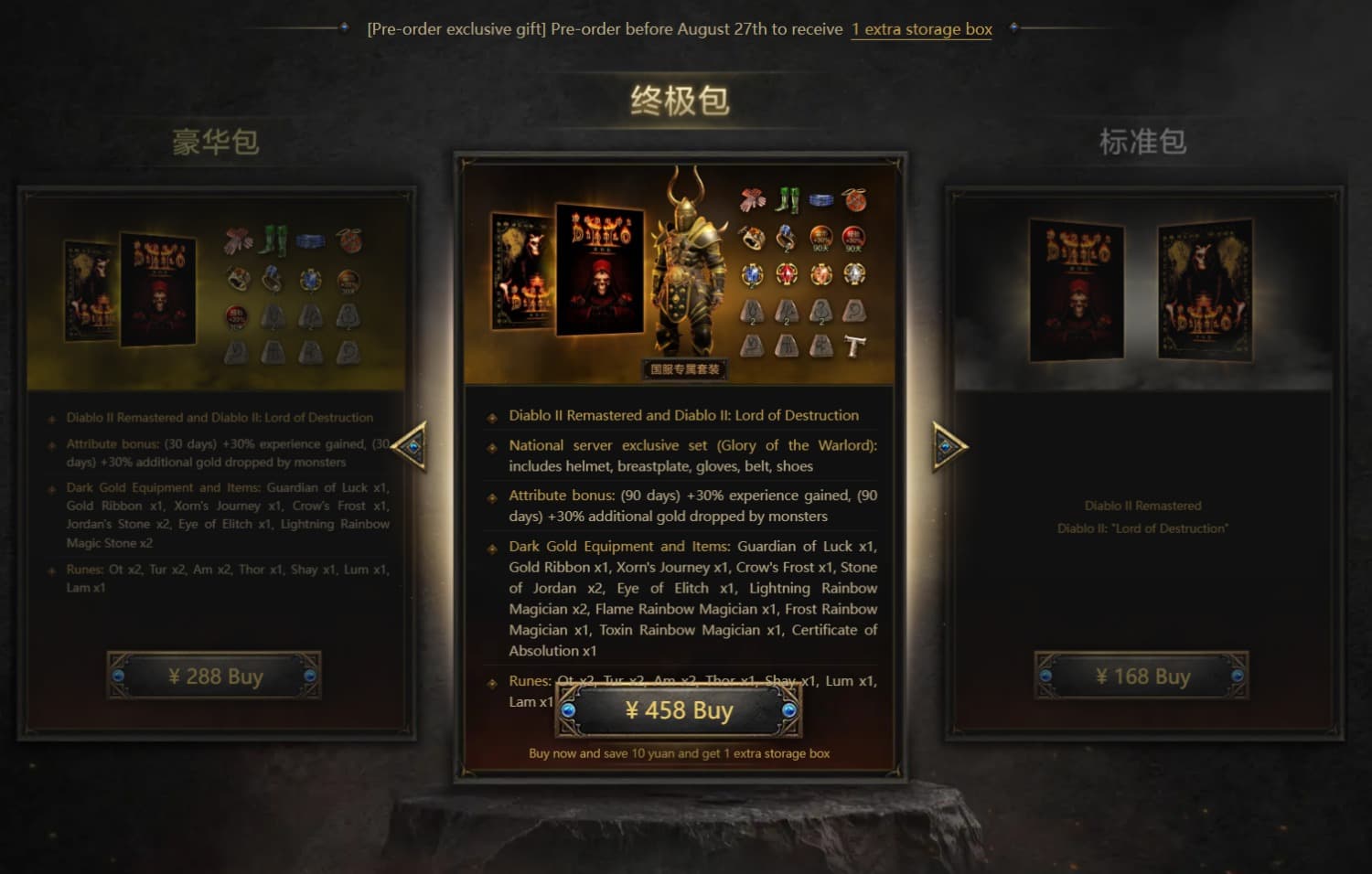 Это не единственный бонус. В набор deluxe включён 30-процентный прирост к опыту и золоту сроком на 30 дней, а также набор рун, пригодных для начальных рунных слов. Всё это даст серьёзный толчок в начале игры.