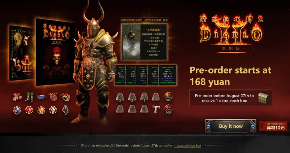 Игроки, оформившие предзаказ до 27 августа 2025 года, получат дополнительную вкладку для хранения. Учитывая, что Diablo 2 строится на управлении ресурсами, это даст ощутимое преимущество в удобстве и эффективности.