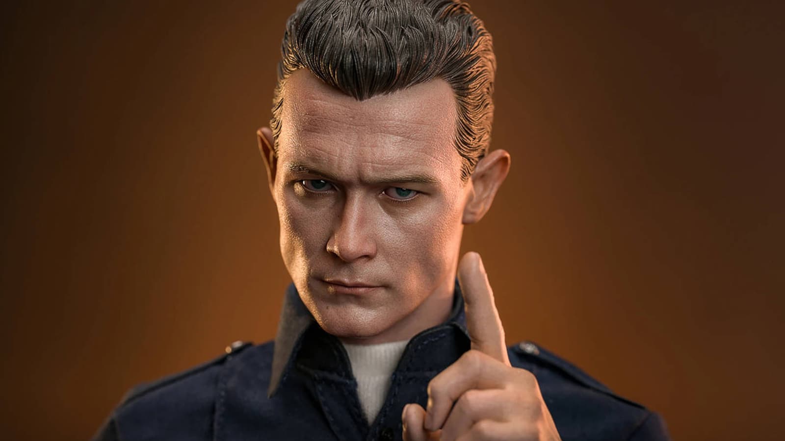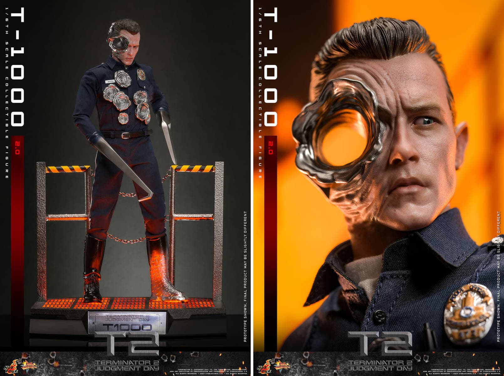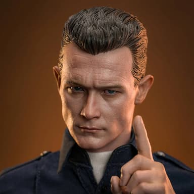 Высота этого коллекционного предмета равна 31 см, и в комплекте можно обнаружить тело с 30 суставами, два скульпта головы с подвижными глазами и внешностью актера Роберта Патрика, 11 сменных рук, темно-синюю полицейскую рубашку со значком и именной биркой, темно-синие полицейские брюки.