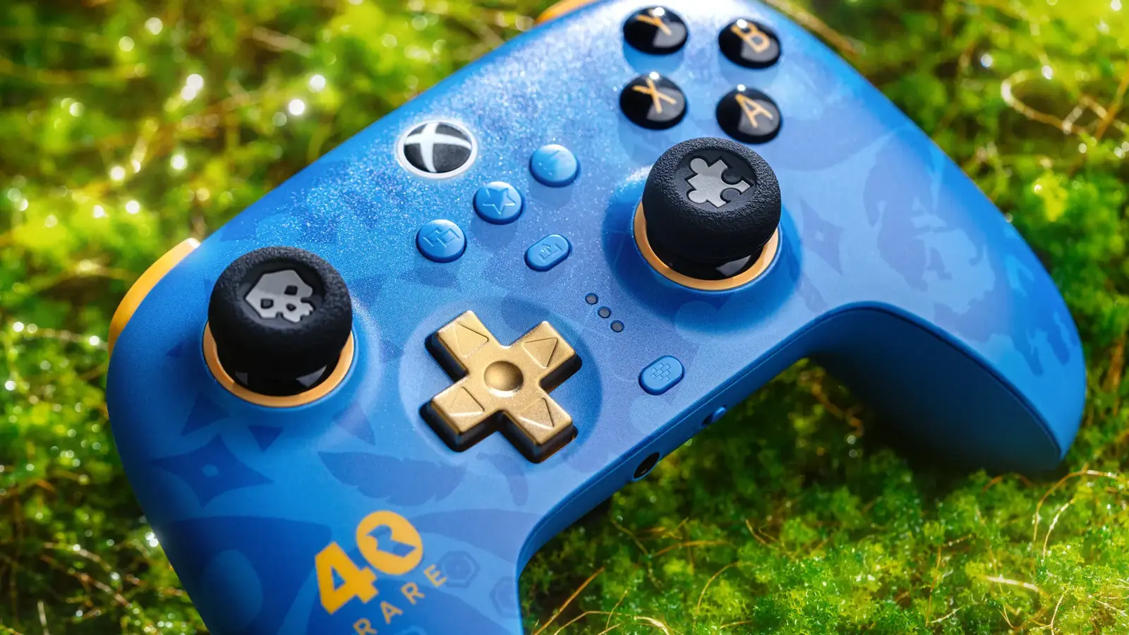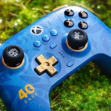 К 40-летнему юбилею студия Rare представила лимитированную версию беспроводного контроллера Xbox, разработанного совместно с компанией 8BitDo. Дизайн выполнен в золотисто-синей гамме с логотипом Rare. D-pad изготовлен из цинкового сплава. В комплект входят две сменные насадки на стики — в форме черепа из Sea of Thieves и детали пазла из Banjo-Kazooie.