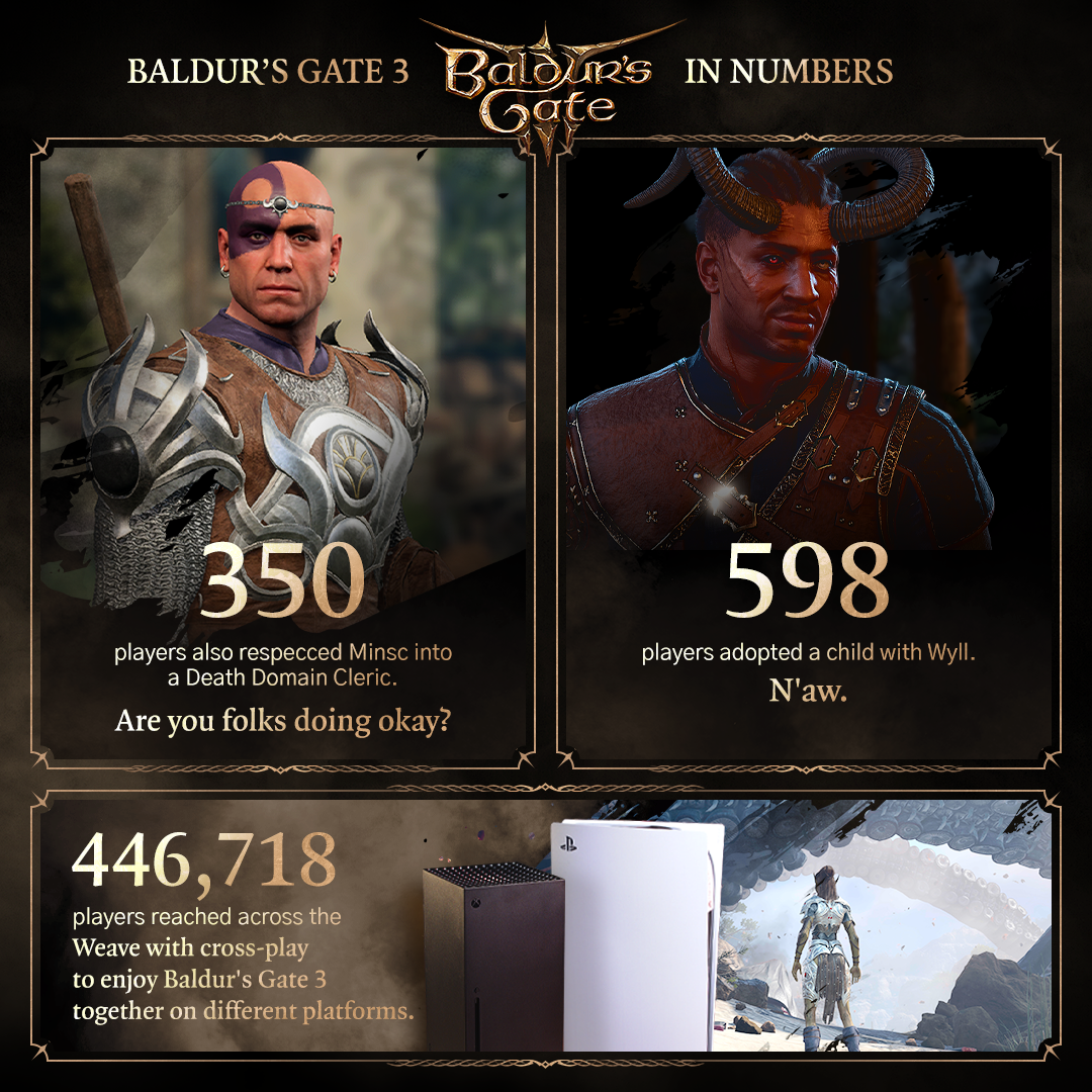 В честь второй годовщины Baldur’s Gate 3 студия Larian поделилась статистикой и поблагодарила игроков за поддержку.