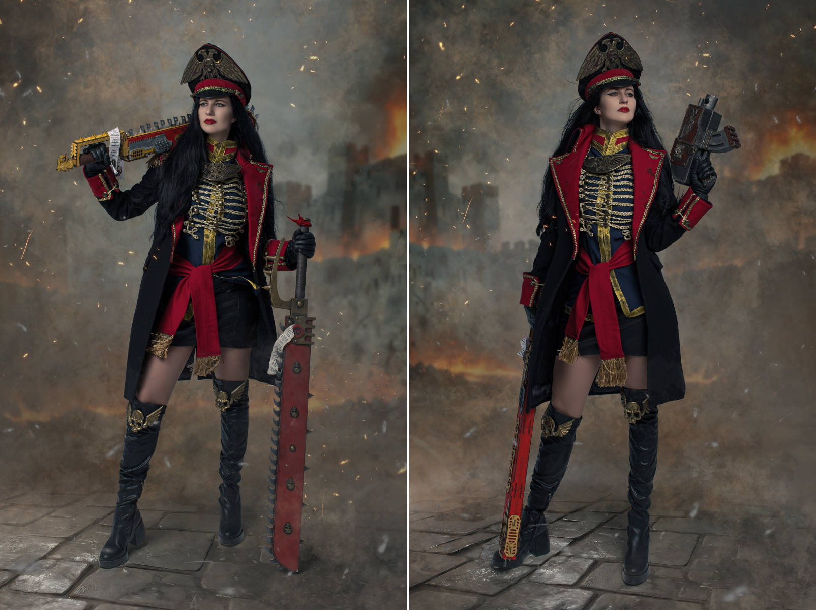 Косплеерша Saint Hysteria вновь перевоплотилась в Комиссара из вселенной Warhammer 40,000, чтобы лично покарать предателей и трусов, не желающих умирать за Императора и Империум, а также поднять боевой дух солдатов Имперской Гвардии.