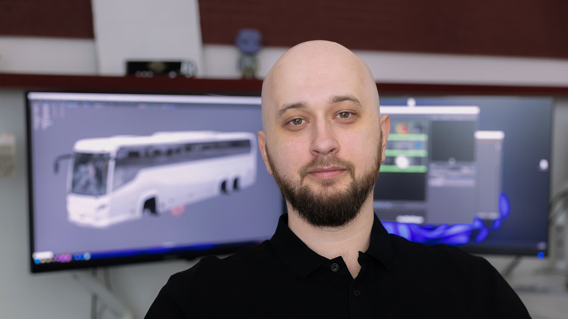 «Иногда я использую Marmoset Toolbag для создания точных карт освещения» — это повышает реалистичность освещения автобуса.