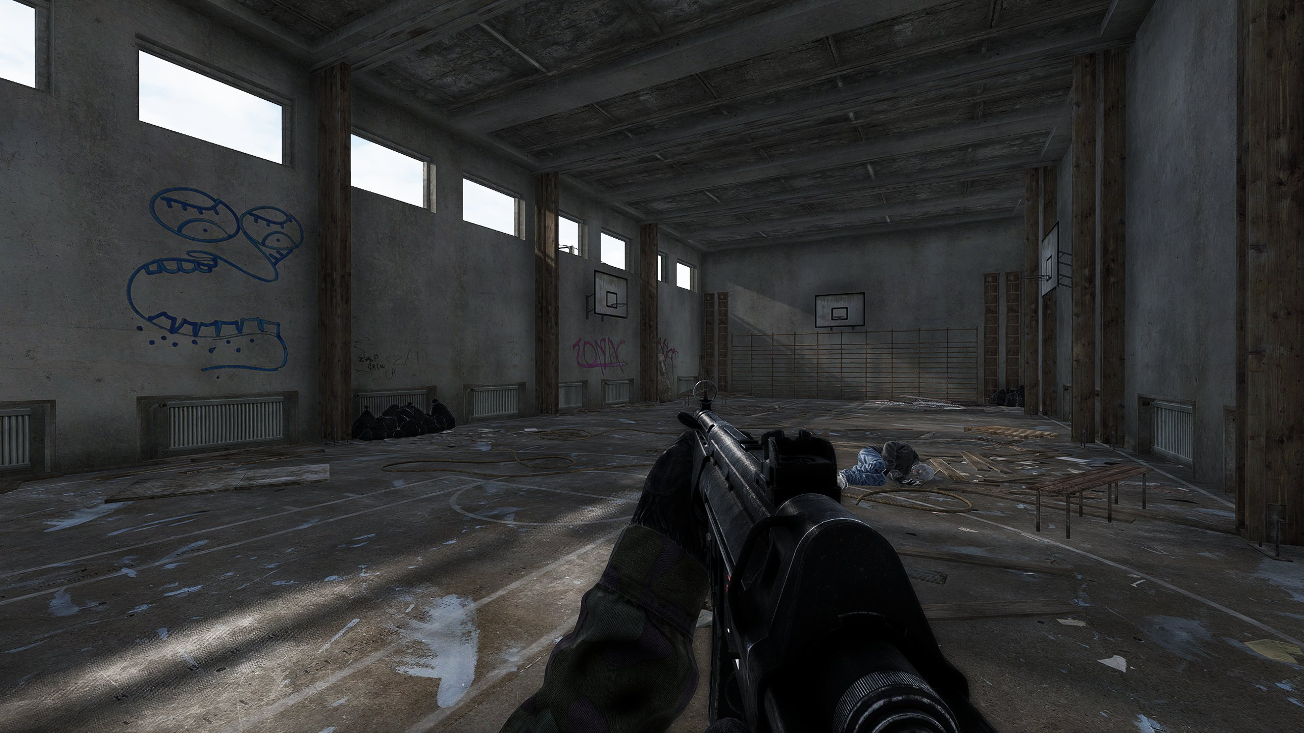 Это школьный спортзал, который также будет выступать в качестве обучающей зоны в раннем доступе.