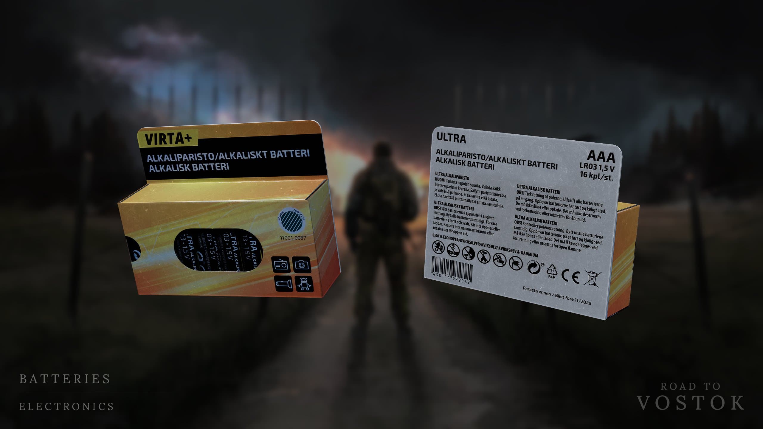 В раннем доступе Road to Vostok для использования фонарика или Прибора Ночного видения придётся их сначала найти и экипировать. Электронике также понадобятся батарейки, и их расход будет варьироваться в зависимости от типа электроники / мощности.