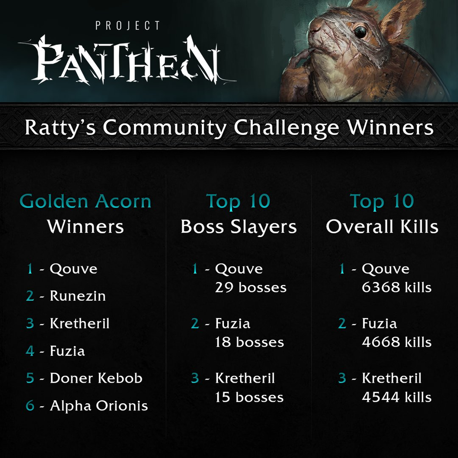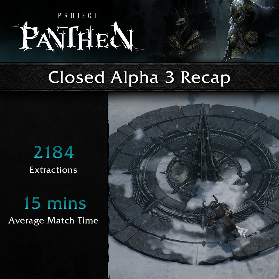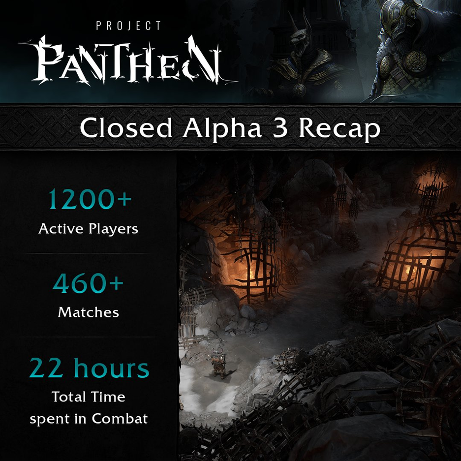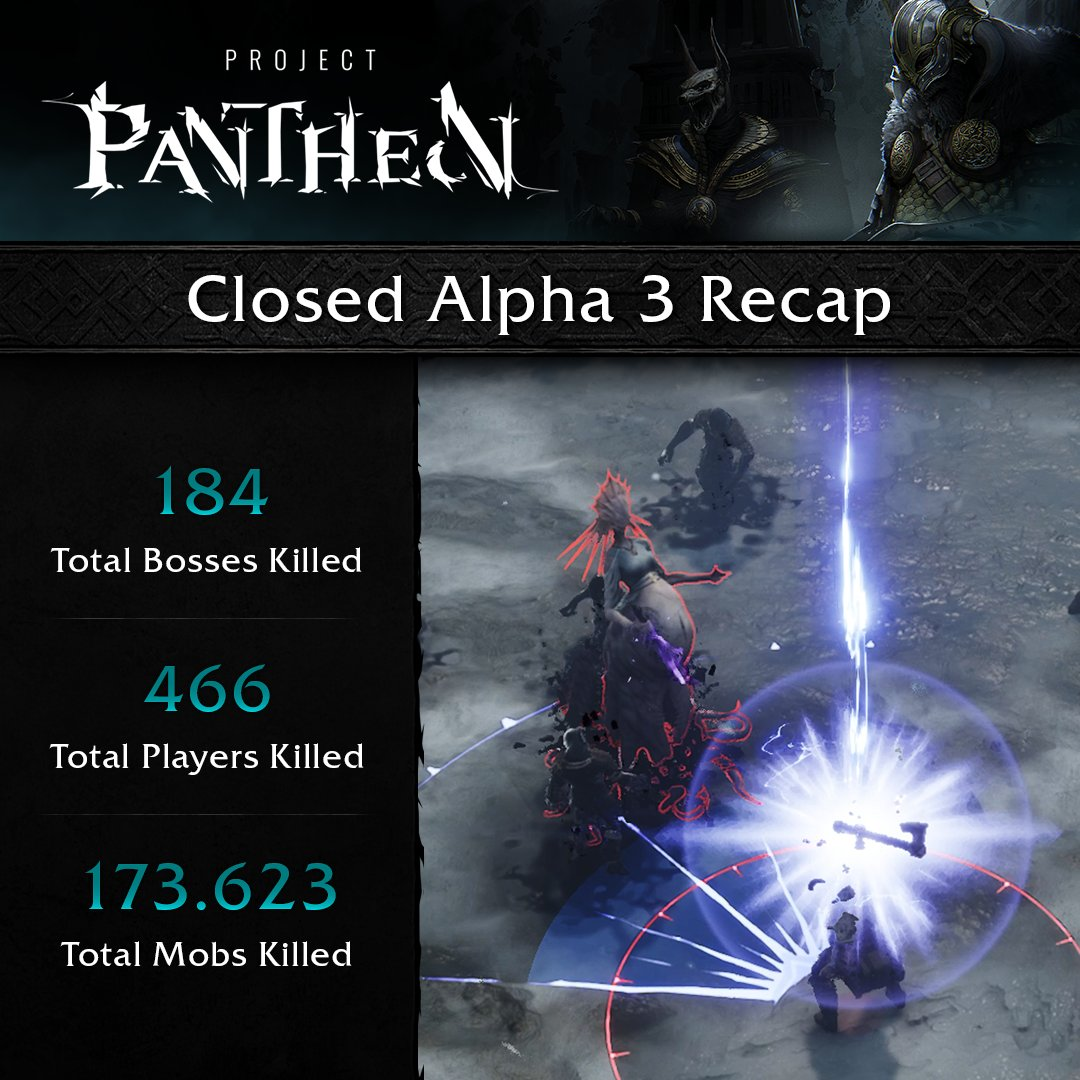 К тестированию Project Pantheon допустили более 1200 игроков, сыгравших свыше 460 матчей. За время альфа-теста убили 184 боссов, 466 игроков и свыше 173 тысяч обычных мобов. Успешно совершили 2184 эвакуации, среднее время матча составляло 15 минут.