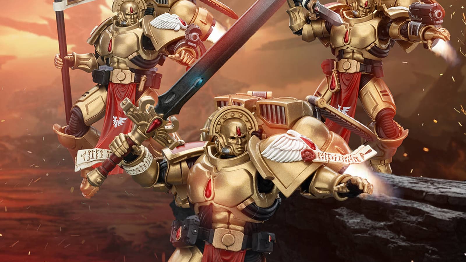 Фанаты вселенной Warhammer 40,000 могут потихоньку скандировать боевой клич «За Императора и Сангвиния!», так как в 2025 году компания JoyToy намерена выпустить набор с тремя фигурками Сангвинарных Гвардейцев из ордена Кровавых Ангелов.