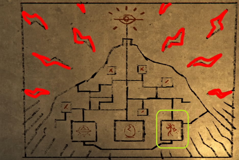 Gator Keys всё же видит определённый смысл в пасхалке. Пример его трактовки известного загадочного изображения горы: