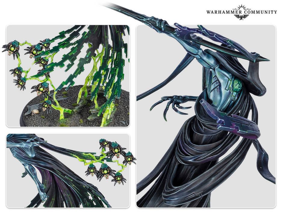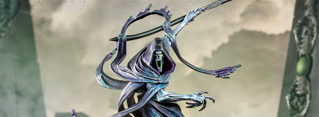 С гигантской косой, развевающимся позади плащом из некродермиса (живого металла) и роями скарабеев, новая версия станет идеальным центральным элементом для бессмертного войска некронов в армии игрока. Данная миниатюра получит новую таблицу данных.