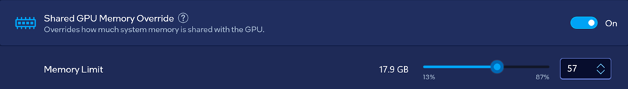 Компания Intel выпустила обновлённую версию драйвера Arc Graphics (v32.0.101.6987), в которой появилась функция Shared GPU Memory Override. Она позволяет вручную задавать объём оперативной памяти, используемой встроенным графическим процессором.