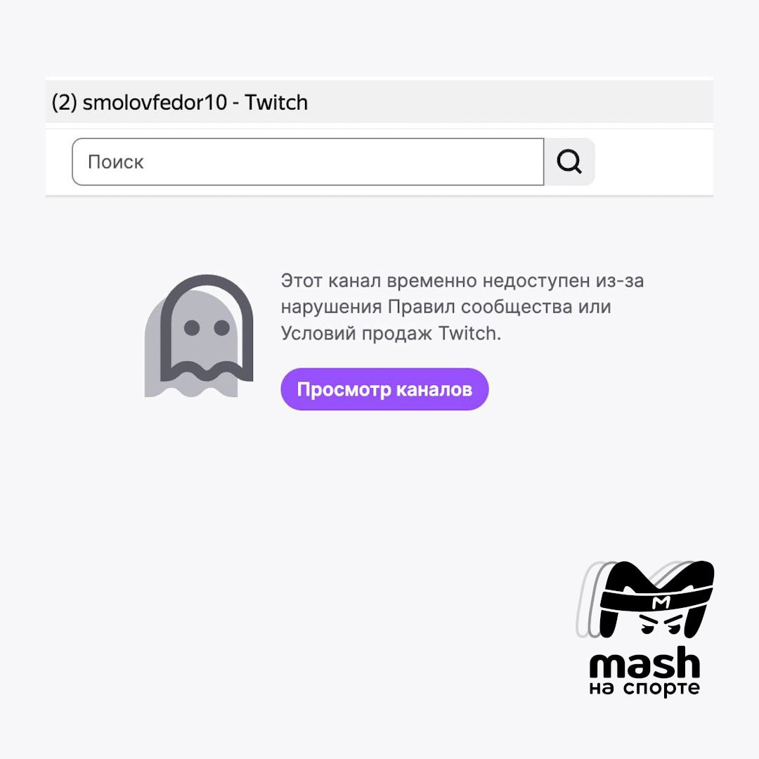 В «Mash на спорте» обратили внимание на то, что футболист Фёдор Смолов получил бан на Twitch — недавно он пригрозил приехать и «дать леща» игроку.