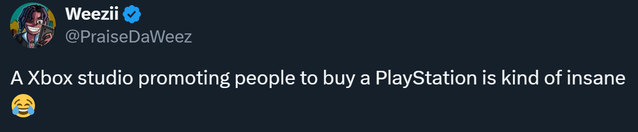 Игроки, вроде PraiseDaWeez, оценили случившееся: «Студия Xbox, предлагающая людям купить PlayStation, — это какое-то безумие».