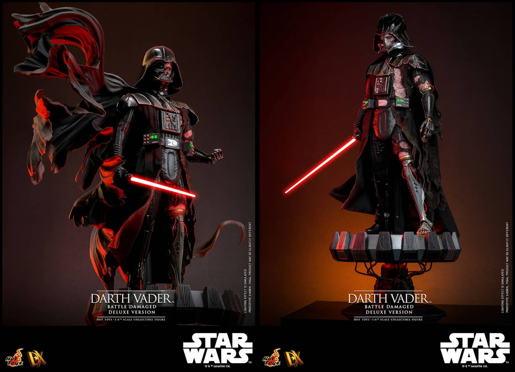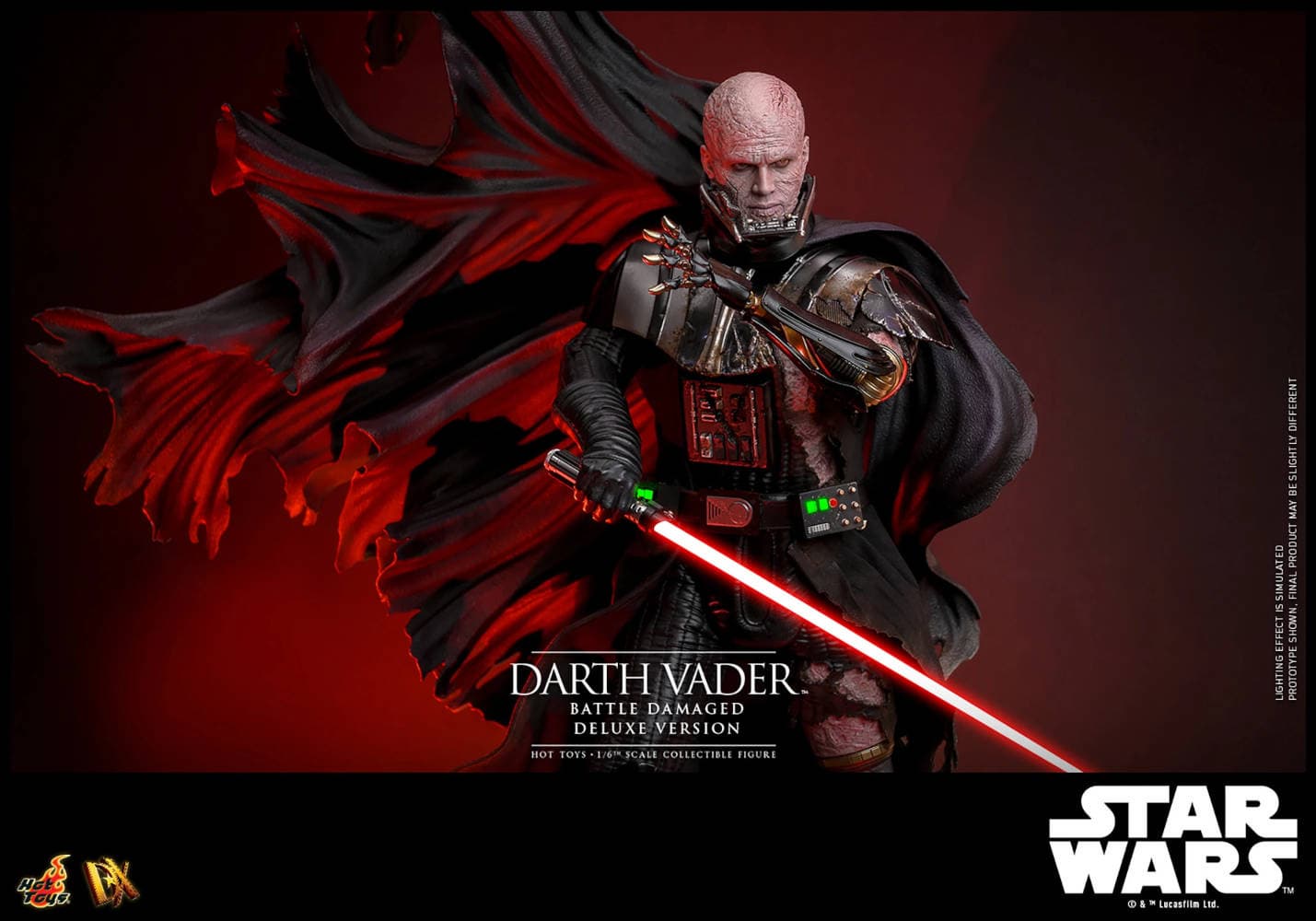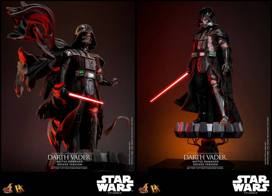 Коллекционеры, соскучившиеся по Тёмной стороне Силы из «Звездных войн», уже могут купить новую фигурку Дарта Вейдера в поврежденной броне и со светодиодной подсветкой, выполненную в масштабе 1/6.