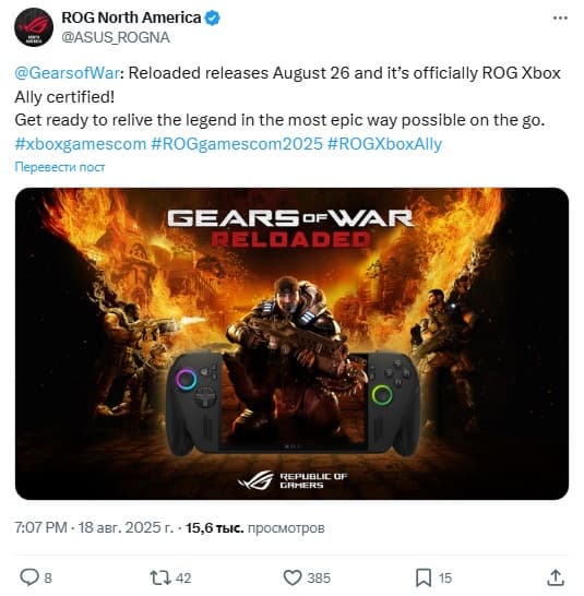 Компания ASUS объявила важную новость для фанатов игр — Gears of War: Reloaded станет первой официально сертифицированной игрой для ROG Xbox Ally.