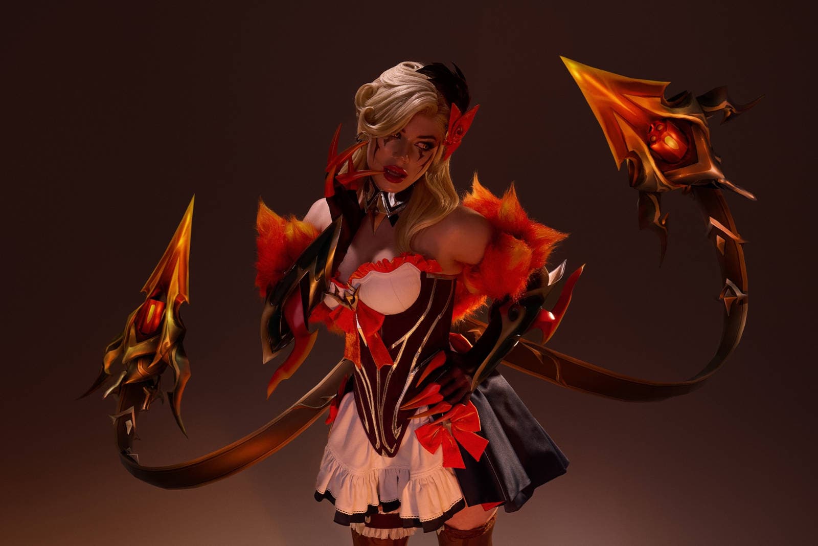 Косплеерша Ксения «KamikoZero» Бекназарова предстала в образе демонессы Эвелинн из League of Legends, которая облачилась в ковбойский скин и отправилась на поиски новых жертв, чтобы насладиться их болью и страданиями.