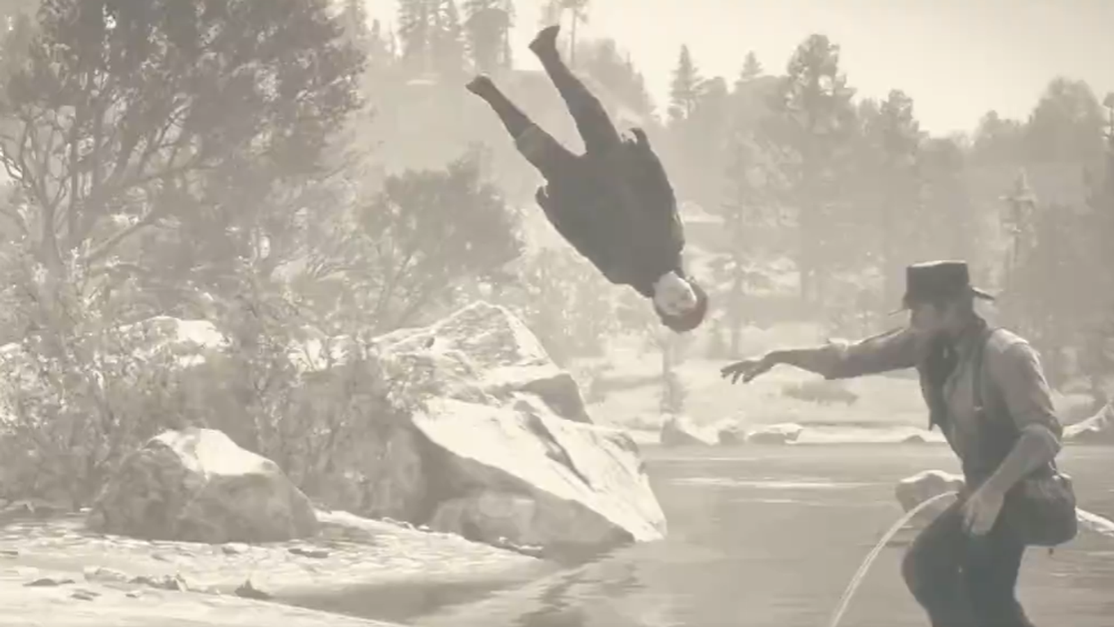 С технической точки зрения маленький Джек Марстон является неуязвимым персонажем и он лёгкий. Blurbstv подумал и решил что это можно использовать: он взял Джека в руки, чтобы превратить в метательное оружие.
