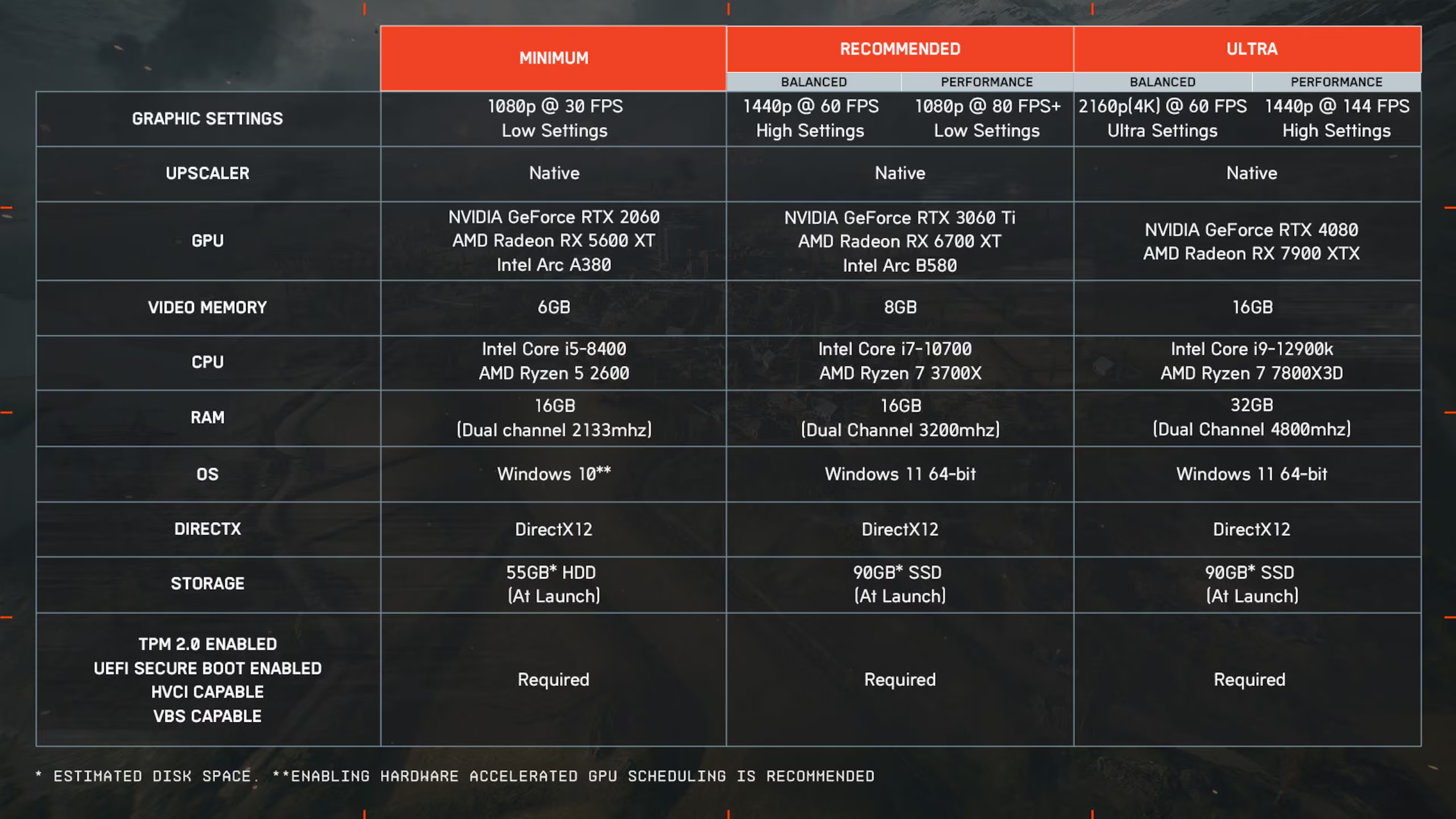 В качестве «минимальных» видеокарты указаны GeForce RTX 2060, Intel Arc A380 и Radeon RX 5600 XT — их должно хватить для 30 FPS в 1080p на низких настройках. Желающие играть на «ультра-настройках» в 4К при 60 FPS должны использовать RTX 4080 или Radeon RX 7900 XTX.