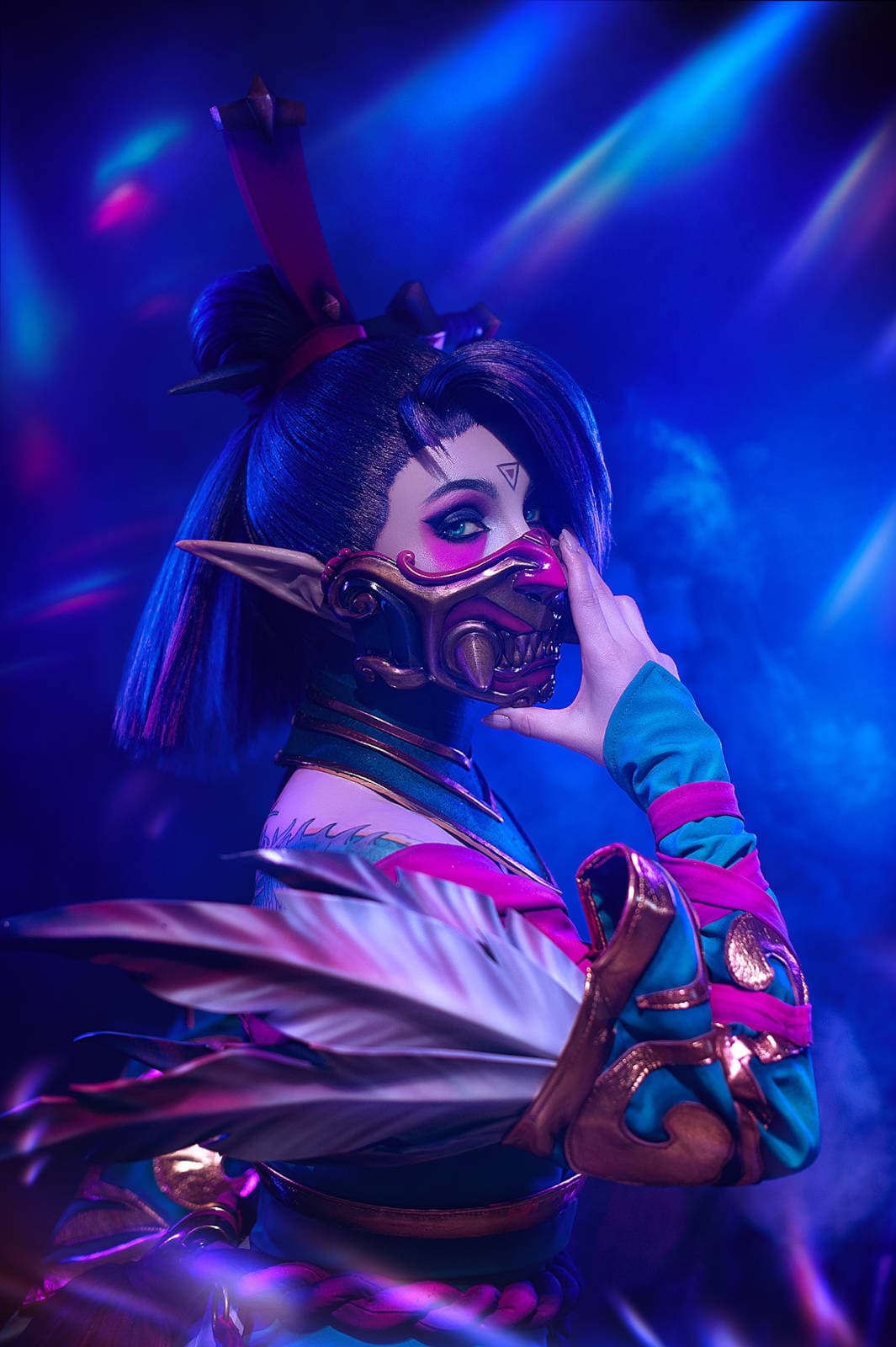 Во время фотосессии модель воплотила образ героини Templar Assassin, способной активировать режим невидимости, выпускать псионические клинки, размещать ловушки и телепортироваться к ним.