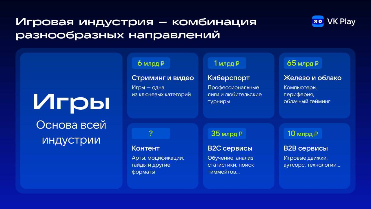 Также VK Play приводит оценку аудитории; геймеров 60 - 90 миллионов человек и они распределены по ряду групп: