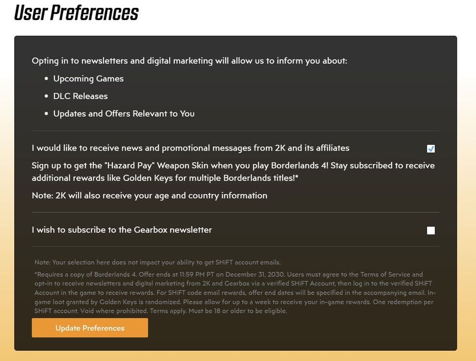 Если у вас уже есть учётная запись SHiFT, вы можете получить скин оружия Hazard Pay. Для этого: