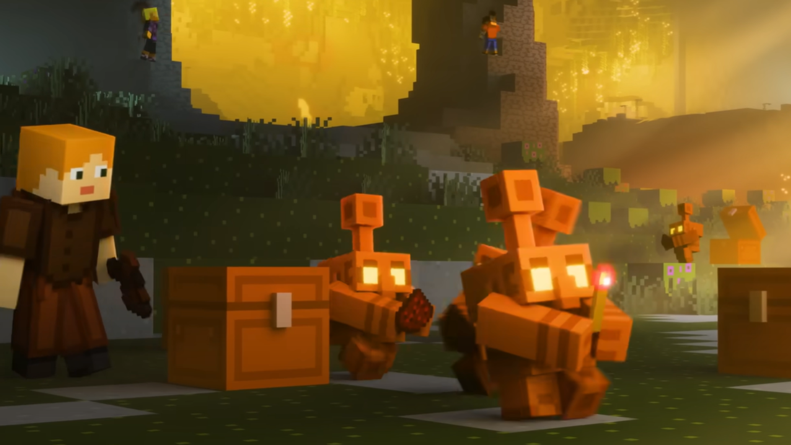 В трейлер включили подборку кадров с медными големами (новый дружелюбный моб), а также продемонстрировали танец.
