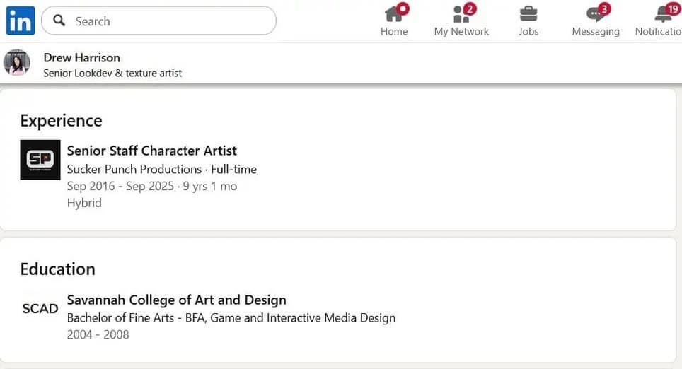 Официальных заявлений от Sucker Punch и Sony по поводу публичной позиции Харрисон не поступало, однако она сама написала на своей странице в Blue Sky, что «борьба с фашизмом» стоит того, чтобы лишиться работы мечты. Харрисон также обновила свой профиль в деловой социальной сети, указав, что проработала в Sucker Punch до 2025 года.