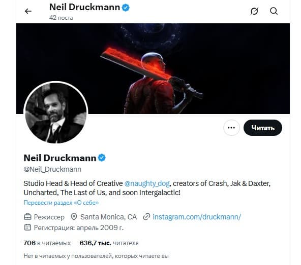 Компания PlayStation традиционно не комментирует слухи, но внезапно к теме оказался причастен Нил Дракманн. Руководитель Naughty Dog, известный по The Last of Us и Uncharted, обновил описание профиля в сети X, добавив к арт из Intergalactic: The Heretic Prophet и короткую приписку: «Intergalactic скоро».