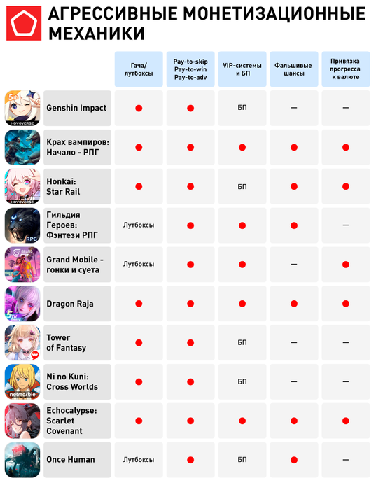 В список проектов с агрессивными механиками монетизации попали игры miHoYo (HoYoverse) — Genshin Impact и Honkai Star Rail.