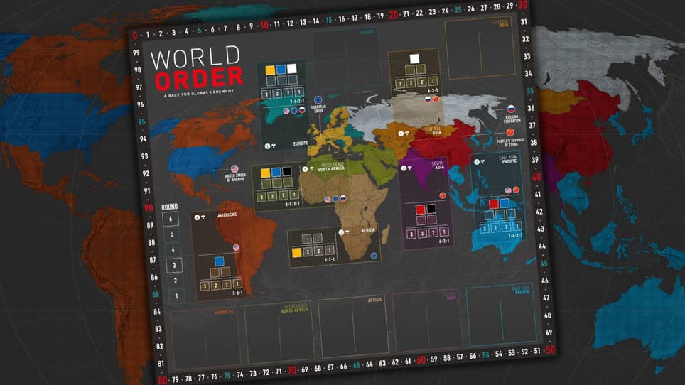 «Мировой порядок» – это настолка на контроль территорий с асимметричными фракциями и элементами колодостроения для 2–4 человек. В ней людям удастся возглавить одну из четырех ведущих мировых держав на политической арене 2010 года: Россию, США, Китай и Европейский союз.