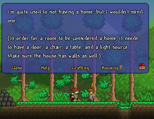 Разработчики также поделились спойлером обновления — для появления жителей больше не потребуется дом (если дом не был построен, то NPC об этом попросят игрока). Они уточнили, что с наступлением ночи все бездомные уйдут в безопасное место.